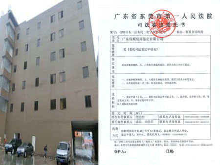 東莞市第一人民法院東城主山大井頭工業區房屋司法鑒定