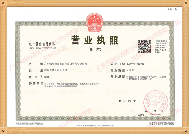 - 總公司:廣東保順檢測鑒定有限公司(下轄分公司70+家)