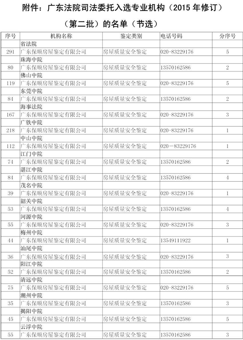 按照粵高法[2015]114號《廣東法院司法委托入選專業機構(2015年修訂)的基本條件》,經過法院審查核實,廣東保順檢測鑒定有限公司順利入選“中山中級法院”司法委托專業機構名錄。
