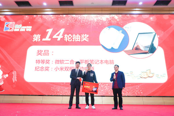 年會全程穿插十四輪抽獎環節,筆記本電腦、手機 、單反相機等總值超過10萬元的三百多件獎品輪番抽!