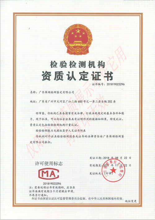 廣東保順檢測鑒定有限公司是具有國家CMA資質認證、建設工程質量檢測機構資質證書、無損檢測機構資質,以及住建委專業技術資質備案的甲級房屋鑒定單位,并已通過ISO9001質量管理體系及國家高新技術企業認證。業務遍布廣東、廣西、海南、湖南、湖北、貴州、四川、云南、西藏、安徽、福建等省市。目前已入冊廣東、廣西、海南、湖南、湖北、四川、貴州、云南等高級人民法院司法鑒定機構名冊,成功受理各類司仲裁糾紛案例5000余宗。