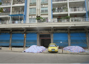 廣東省佛山市陳村舊圩樟村街31號陳村鎮三街樟村街18號商鋪(以下簡稱“該房屋”),該房屋主體為七層框架結構,以鋼筋混凝土柱、梁及板等構件共同承重,180mm厚磚墻圍護及分隔;本次勘察范圍為該房屋首層局部1-5~2-7×2-A~2-B;陳村鎮三街樟村街18號商鋪使用區域(以下簡稱“該房屋勘察區域”),該房屋首層層高為5.5m,夾層高為2.5m;勘察面積約為315.58m2。