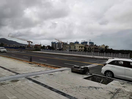 崖州大道為西北往東南方向的一條城市主干路,在工程范圍內(nèi),共跨越1條規(guī)劃河道。橋位處為現(xiàn)狀還金路,瀝青混凝土路面。現(xiàn)狀無(wú)河道、無(wú)老橋,周圍為種植區(qū)。橋梁跨越規(guī)劃河道。規(guī)劃河道設(shè)計(jì)斷面為口寬30m,底寬10m,兩側(cè)各2.5m陸域保護(hù)(藍(lán)線)。河道規(guī)劃河底標(biāo)高2.15m;20年一遇高水位4.95m。